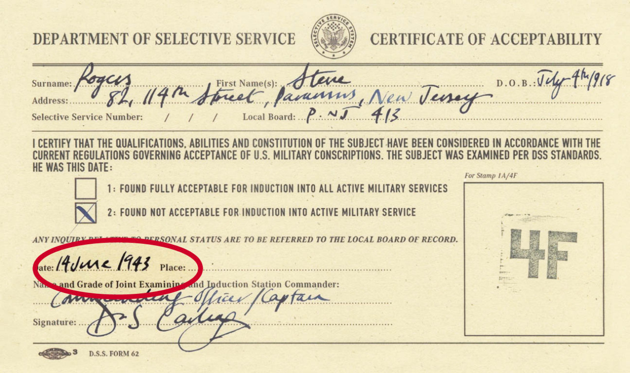 Steve got his last 4F / first 1A on 14th of June, 1943.